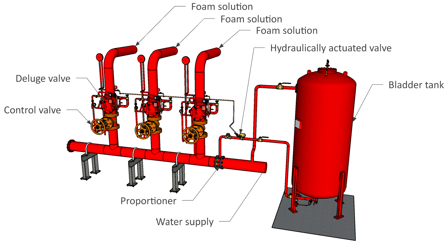 Foam systems are suitable for areas where fire extinguishing should not be used, such as chemical or flammable substance storage rooms, chemical or flammable substance storage tanks, oil depots, etc. Foam equipment and foam solutions are available in a variety of types to suit each type of fire extinguishing.